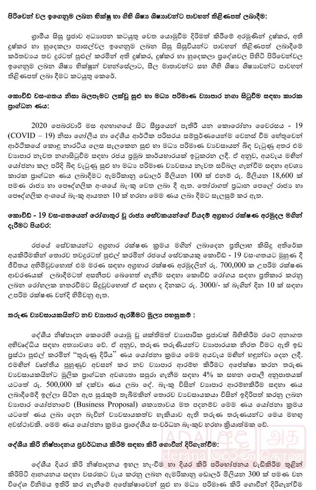 The Ministry of Finance says that the government has decided to implement several proposals presented through the 2021 Budget immediately after the budget is passed in Parliament.